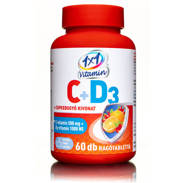 Aktív összetevő: C-vitamin, D3-vitamin, csipkebogyó kivonat (12 mg / tabletta)